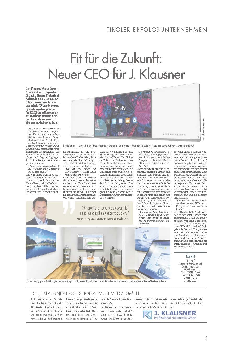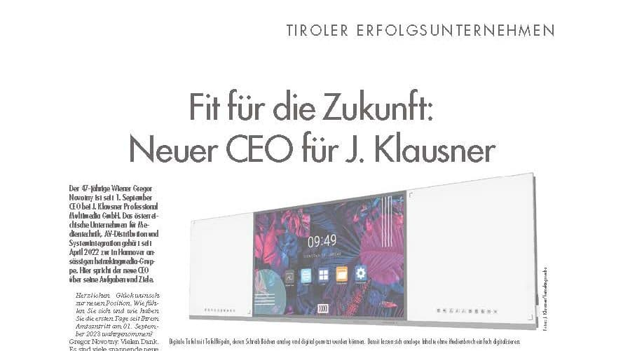 J. Klausner Professional Multimedia GmbH (Innsbruck) ist ein etablierter AV-Distributor und Systemintegrator sowie ein Marktführer für digitale Tafeln und Präsentationstechnik. Das Unternehmen gehört seit April 2022 zur in Hannover ansässigen heinekingmedia-