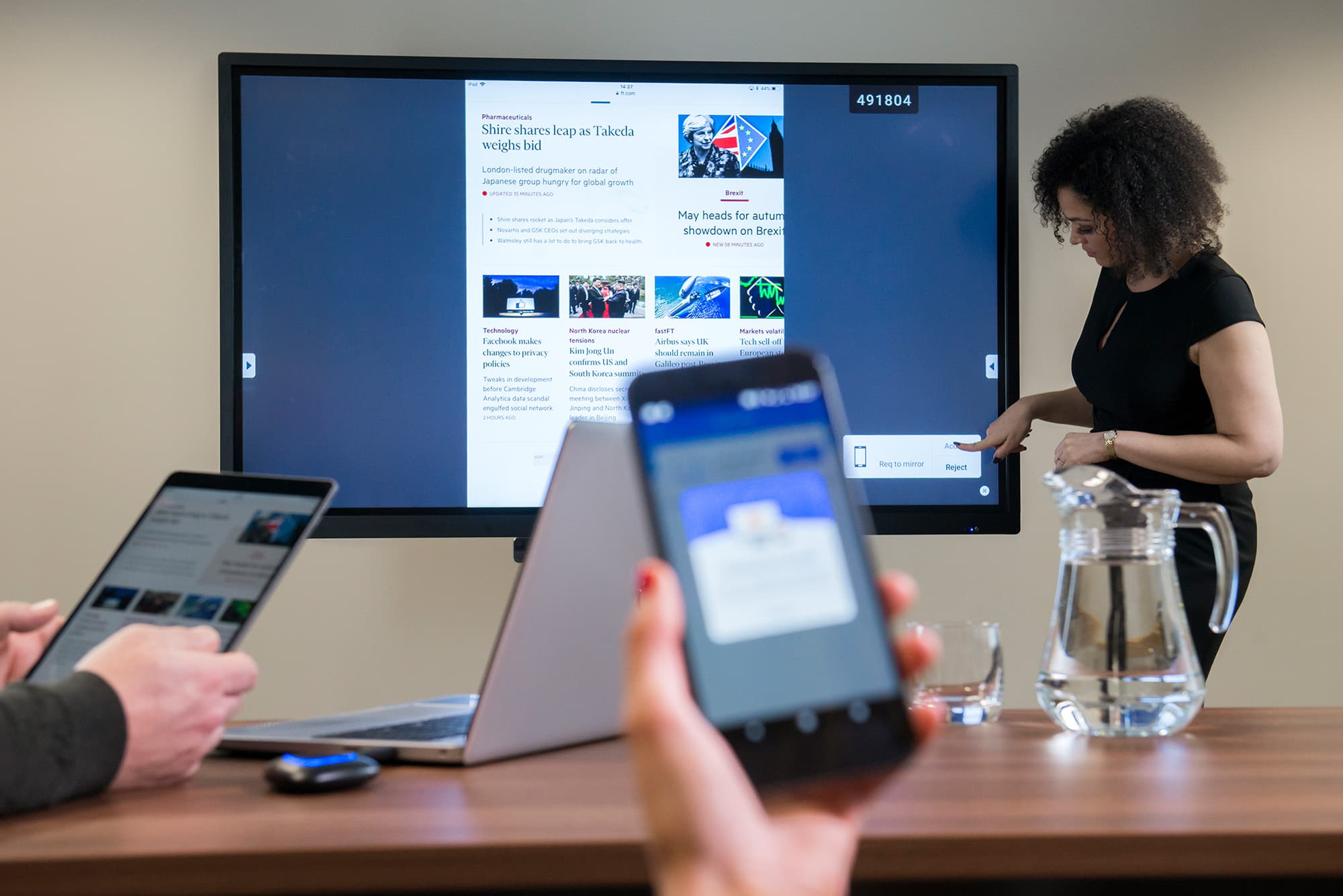 Damit wird jedes Meeting zum virtuellen Präsentationsraum und Mitarbeiterinnen und Mitarbeiter können professionelle und interaktive Online-Besprechungen abhalten. Es wird der oder den Vortragenden ermöglicht, aktiv am Clevertouch Display zu präsentieren, während eingeladene Personen virtuell an diesen interaktiven Präsentationen teilnehmen können.