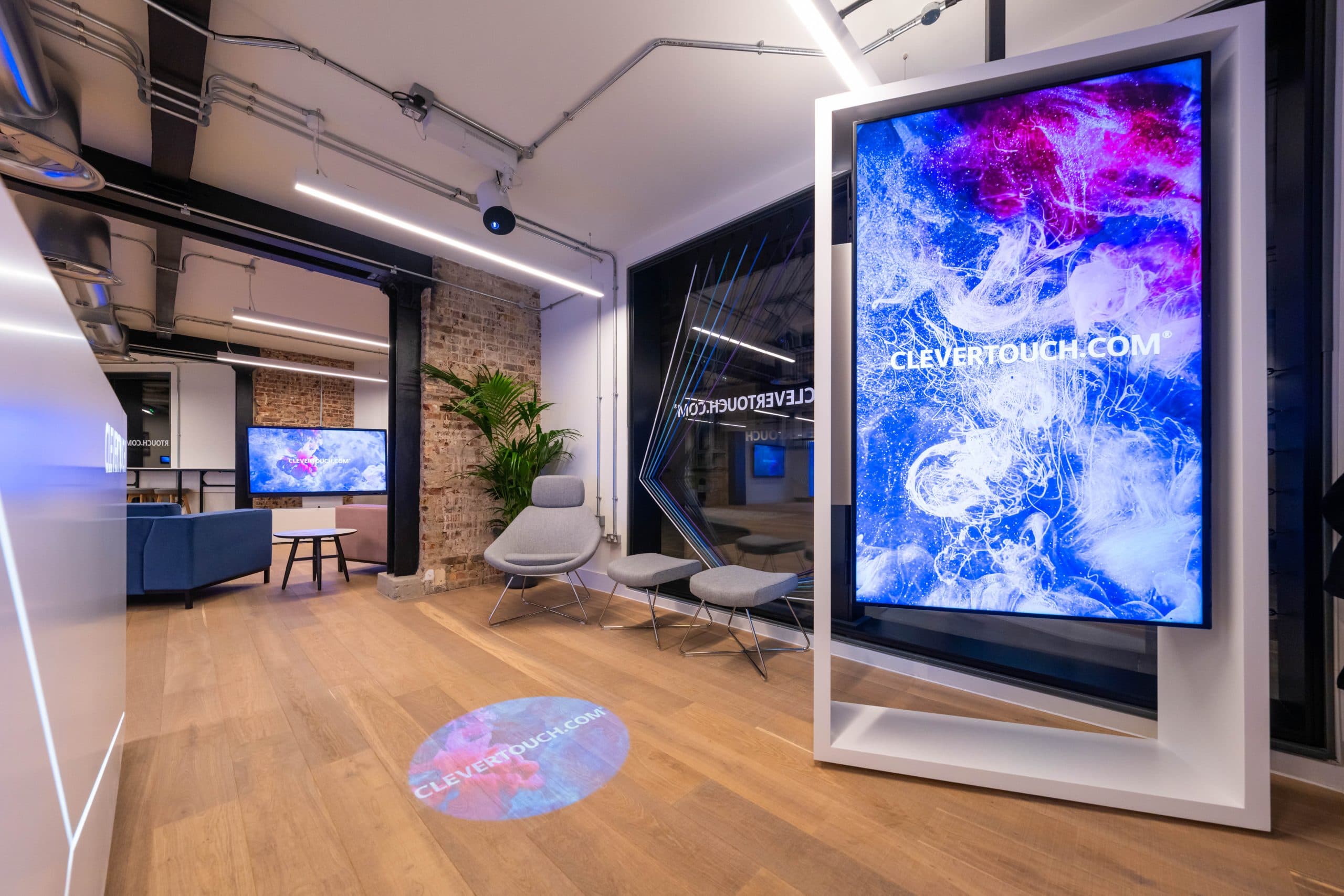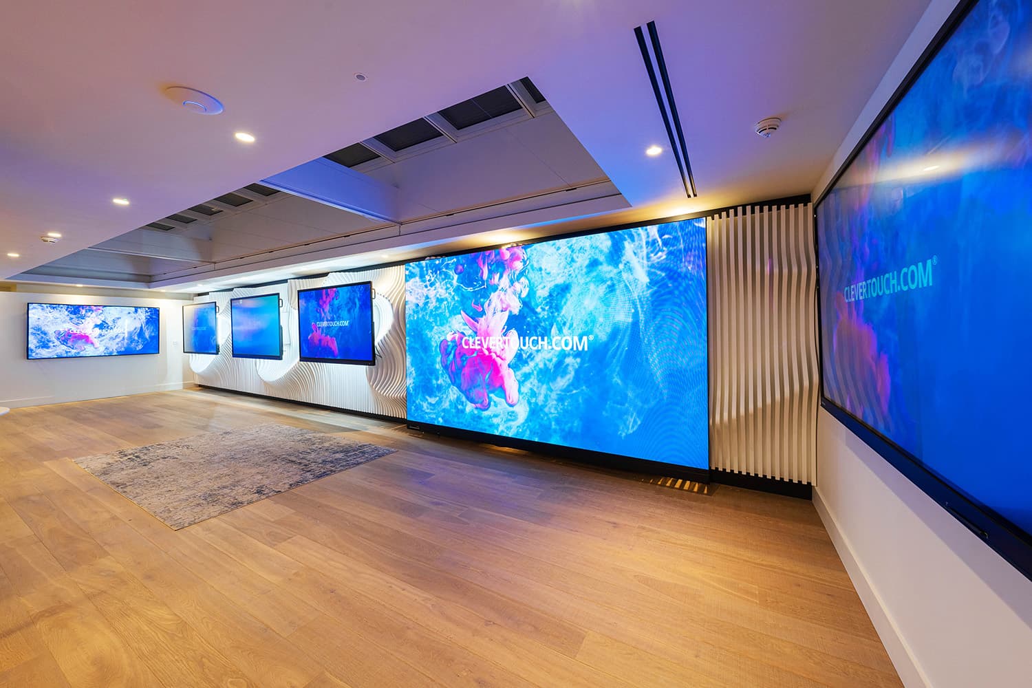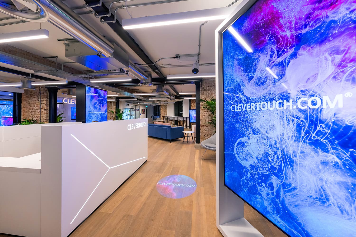 Die 2.500 m² große Clevertouch Gallery spiegelt ein modernes und effizientes Arbeits-Setup für Fernunterricht und hybride Besprechungsräume mit den neuesten Collaboration-Touchscreens des Unternehmens, kommerziellen Displays, digitaler Beschilderung und einer brandneuen, auffälligen Clevertouch LED-Videowand wider, die alle auf Straßenebene zu sehen sind.