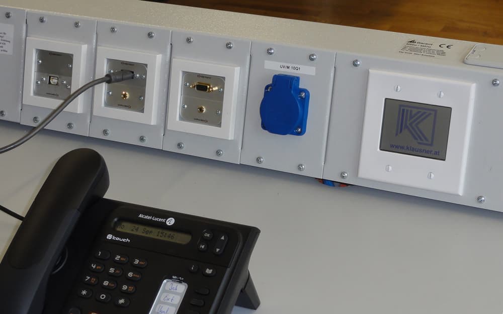 Montage 53 Monitore inkl. Verkabelung und Einbindung 27 Tischanschlussfelder, Ausstattung Redaktionsraum mit Dual-Displaylösung, Einbindung Videokonferenz mit 3 Anschlussmöglichkeiten im Besprechungstisch, inkl. integrierter Steuerung, Ausstattung Schulungsraum mit Full-HD-Ultraweitwinkelprojektor, BOSE Sound-System, AMX Steuerungszentrale, NEETS Tastenbedienfelder, Lieferung Elektrifizierung für 520 Computerarbeitsplätze