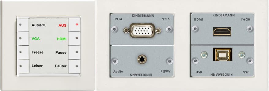 Ausstattung teilbare Mehrzweckräume mit Extron Crosspoint Zentarlen, Projektions- und Beschallungslösungen und praktischen Tastenbedienfeldern