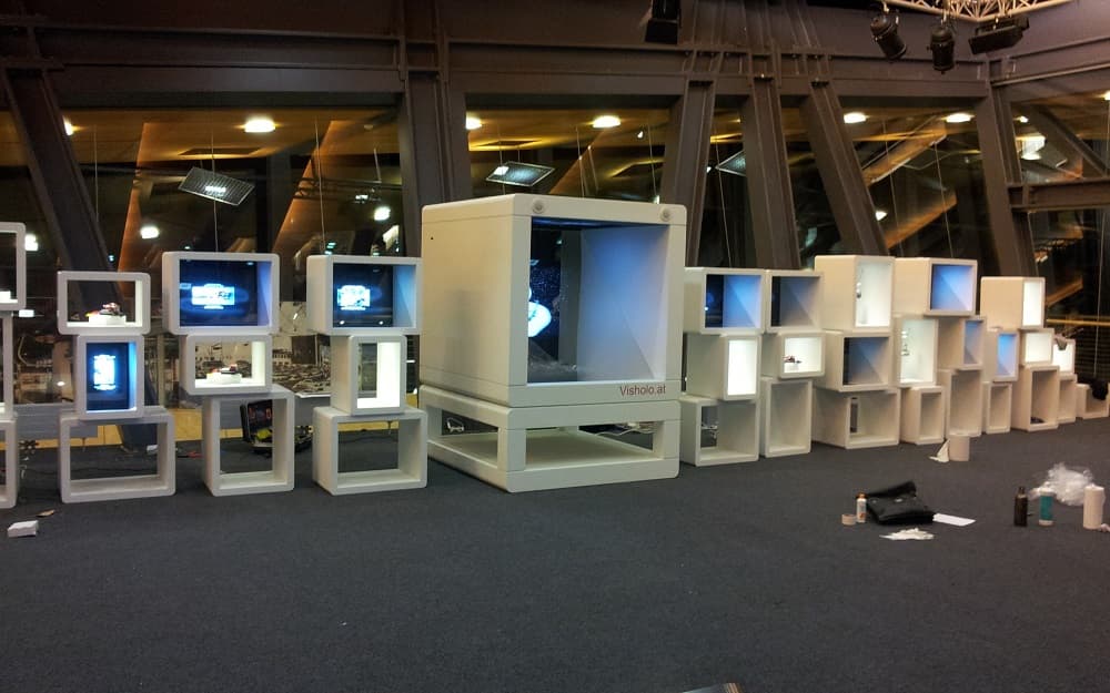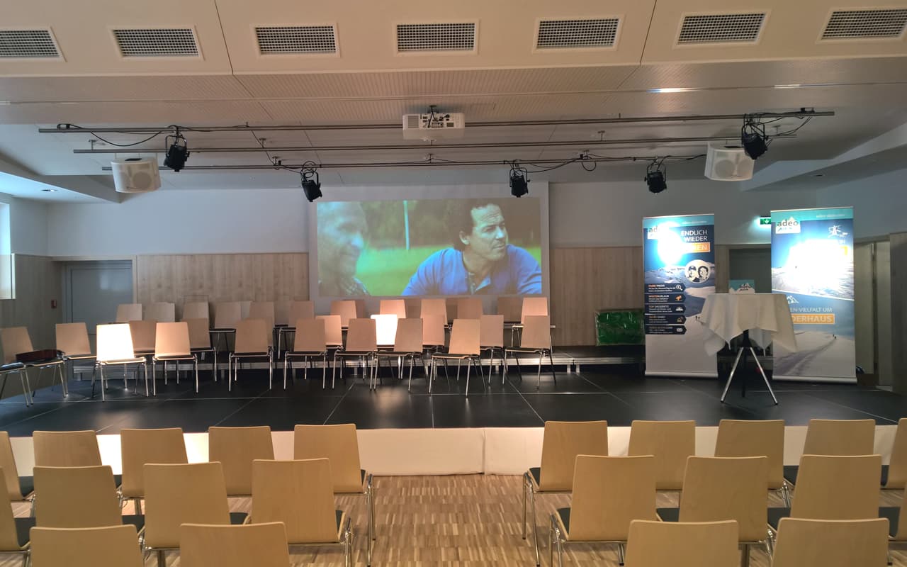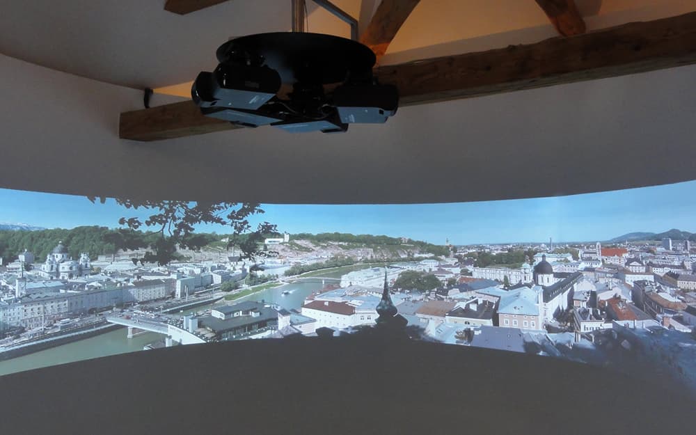 270° Panoramaprojektion mit 4x SANYO PDG-DWL100, STUMPFL MediaEngine als Showcontroller, EXTRON Steuerungszentrale; zeitgleich ablaufende Doppelprojektion mit 2x Full-HD-Zuspielung mit EXTRON Steuerungszentrale; 3fach Bildschirmpräsentation mit 3x HD-Zuspielung und EXTRON Steuerungszentrale