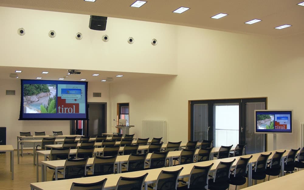 UMIT Hall in Tirol, 3x UX PRO 98” und 8x 86” UX PRO Multitouchdisplays, Airserver für Miracast, Airplay u. Chromecast, Clevershare
