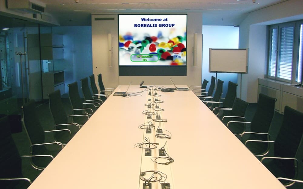 REWE Konzernleitung München, Ausstattung Vorstandsräume u. a. 98“ u. 86″ Clevertouch PRO Display, Sennheiser TeamConnect