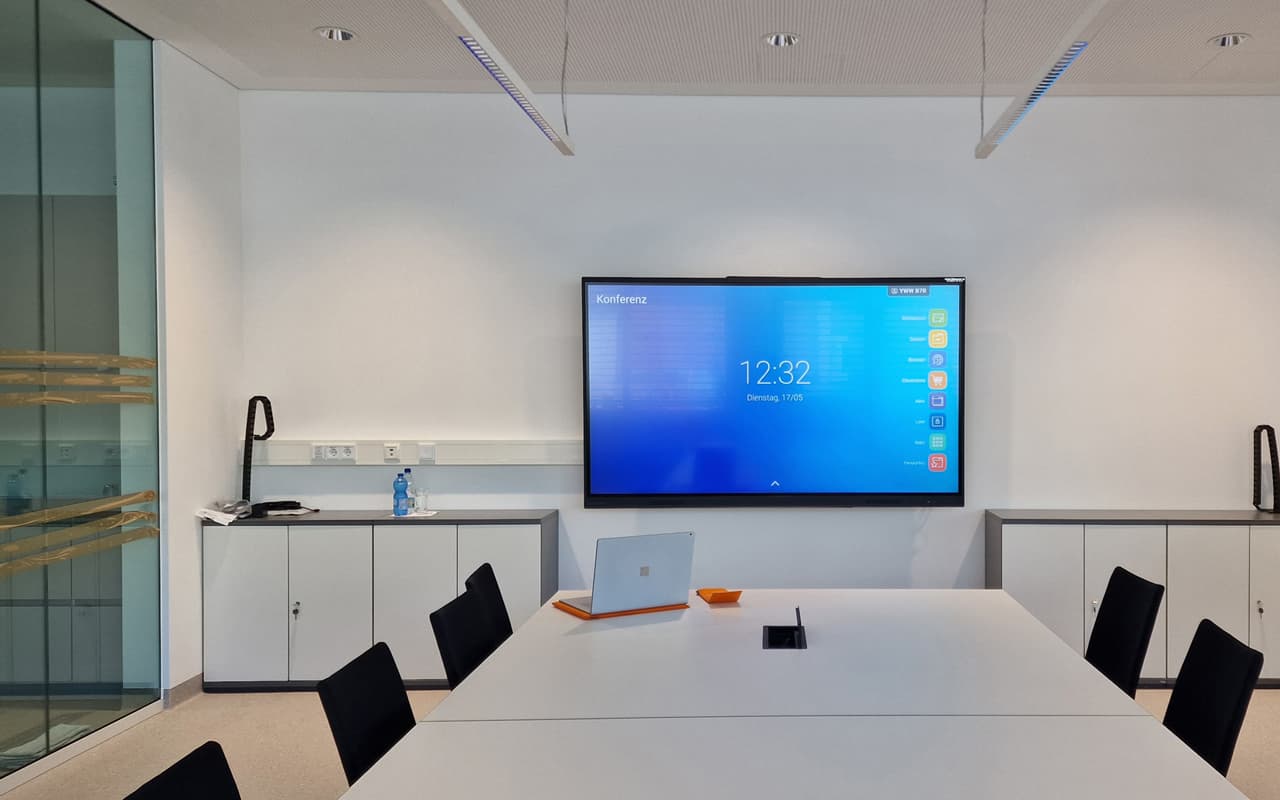 - Clevertouch Impact Plus Multitouchdisplays auf elektrischen Höhenverstellungen mit 65cm Hub: 1x 98″, 7x 86″, 2x 75″ und 1x 65″.